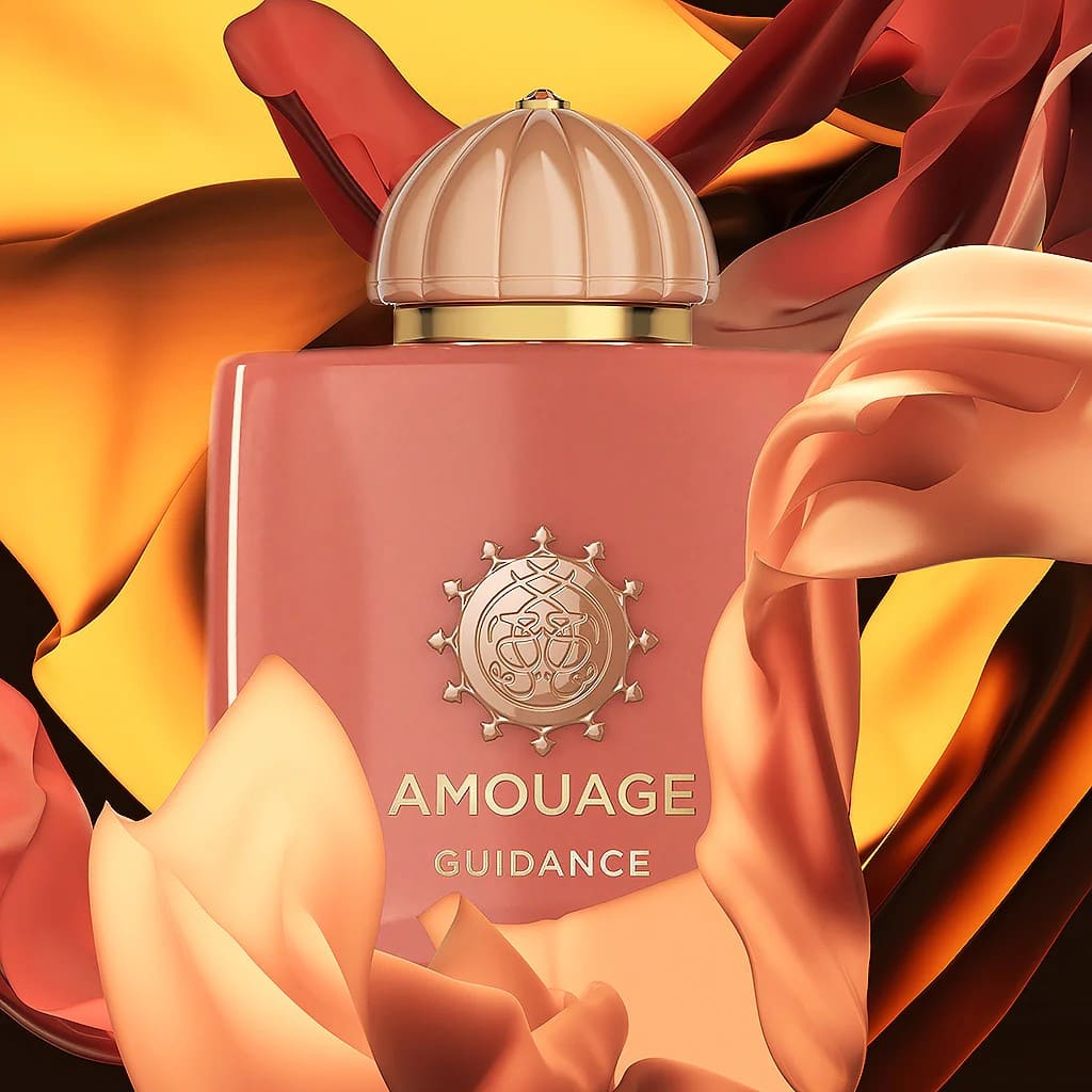 آمواج گایدنس (آمواژ گایدنس) لوزی – AMOUAGE – Guidance عطری بسیار لطیف، عمیق و فوقالعاده لوکس است که تعادلی بینقص بین شیرینی ملایم، گلهای مخملی، چوبهای نرم و کهربای گرم ایجاد میکند.